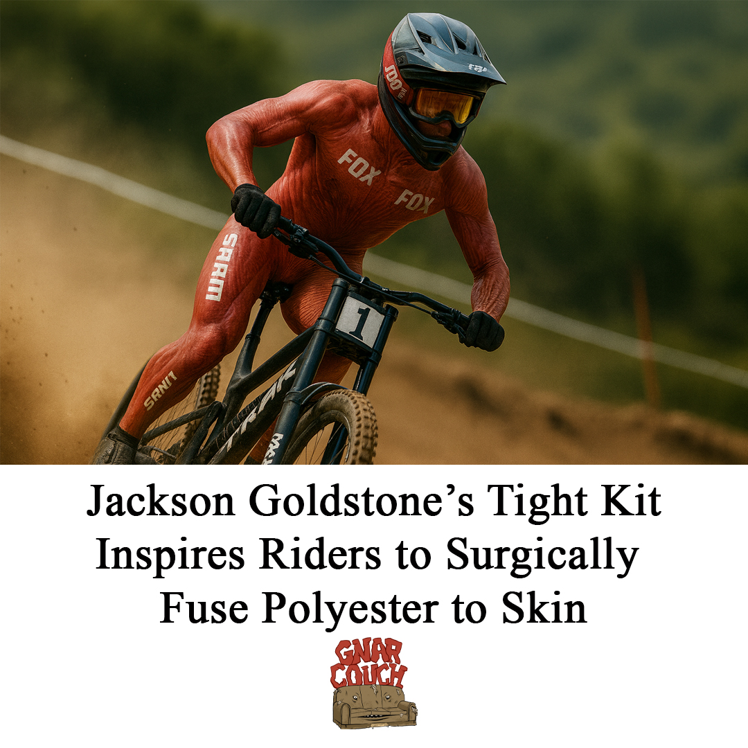 Professional downhill racing has officially merged sport with body horror after Canadian rider Jackson Goldstone stormed to the 2025 UCI World Cup Championship in a kit so tight it looked like it had been poured onto him by a team of fetish-club interns.