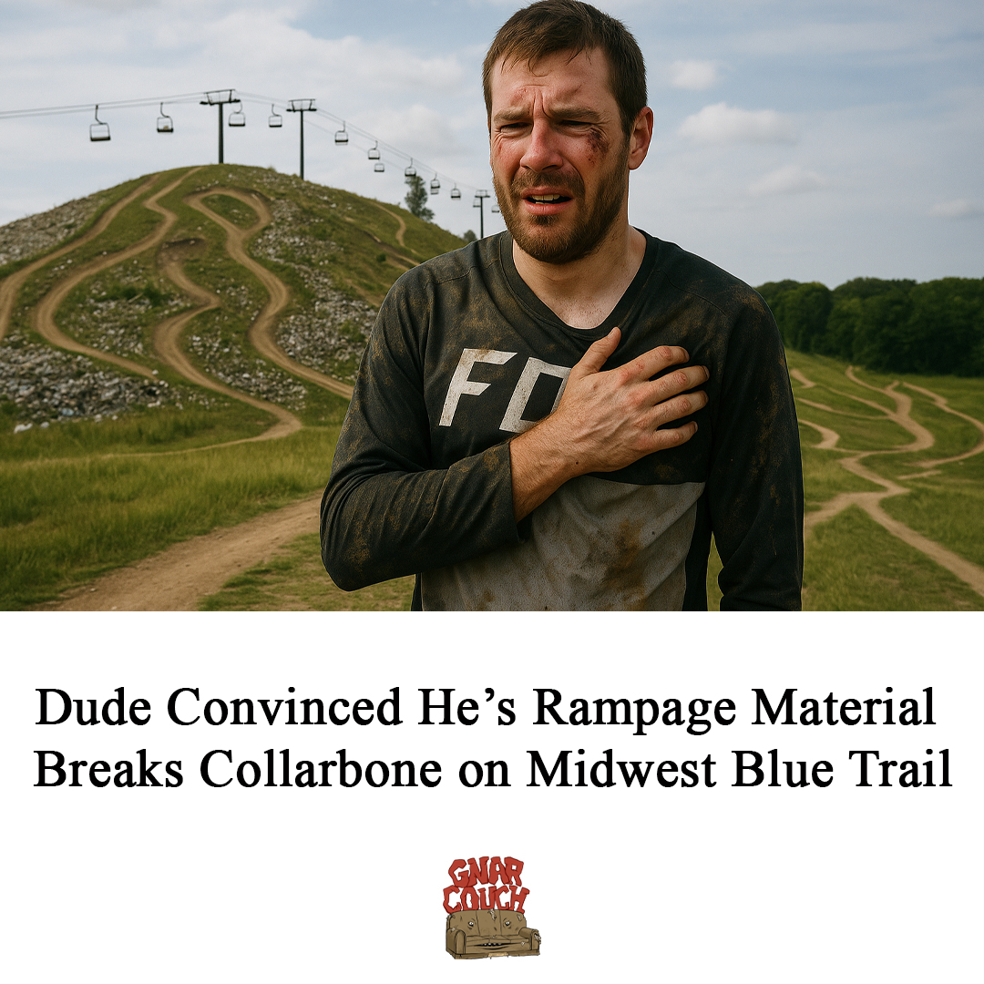 WEST BEND, WI—An Iowa man who repeatedly told friends he’s “basically Rampage-ready” fractured his collarbone Saturday on the second jump of a blue trail at Trash Mountain Bike Park, a bike park famously constructed on a former landfill and known primarily for an incident last year where a man minimally scraped his arm on a bush, contracted MRSA from the hill, and died later in agonizing pain from sepsis and organ failure.